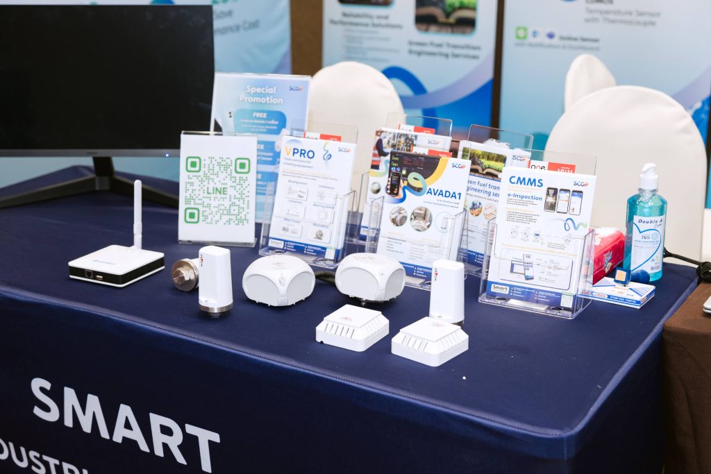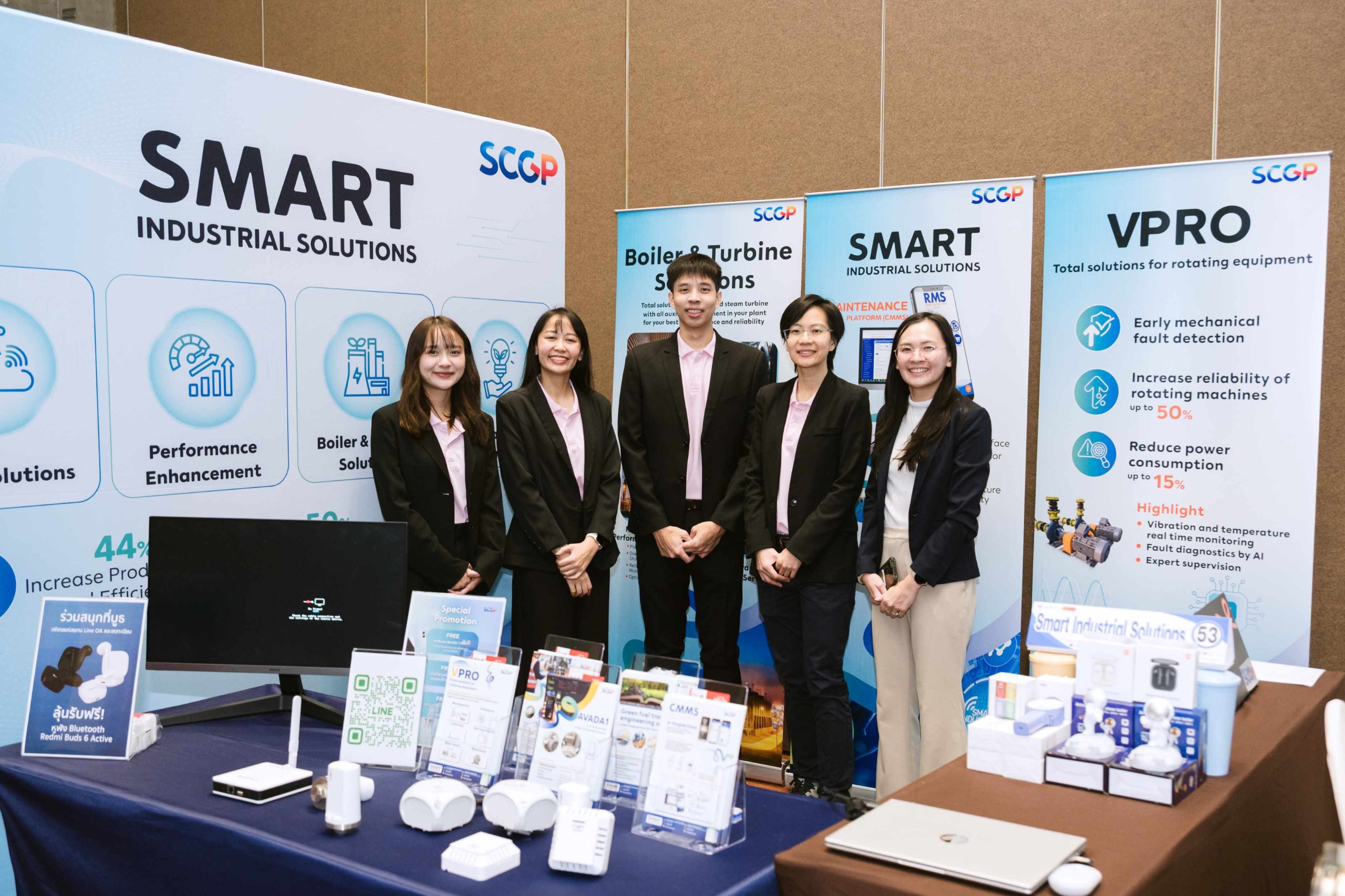 ภายในบูทของ SCGP ได้จัดแสดงโซลูชัน ซึ่งประกอบไปด้วย เทคโนโลยี IoT Sensor, AI Analytics และ Maintenance Platform เพื่อเก็บข้อมูลสภาพการทำงานของเครื่องจักรแบบเรียลไทม์ นำมาวิเคราะห์และคาดการณ์ความเสื่อมสภาพของอุปกรณ์อย่างแม่นยำ ช่วยให้ผู้ประกอบการสามารถวางแผนซ่อมบำรุงได้อย่างเหมาะสม ลดการหยุดชะงักของกระบวนการผลิต (Unplanned Downtime) ลดต้นทุน และเพิ่มความมั่นใจให้กับผู้ประกอบการในระยะยาว